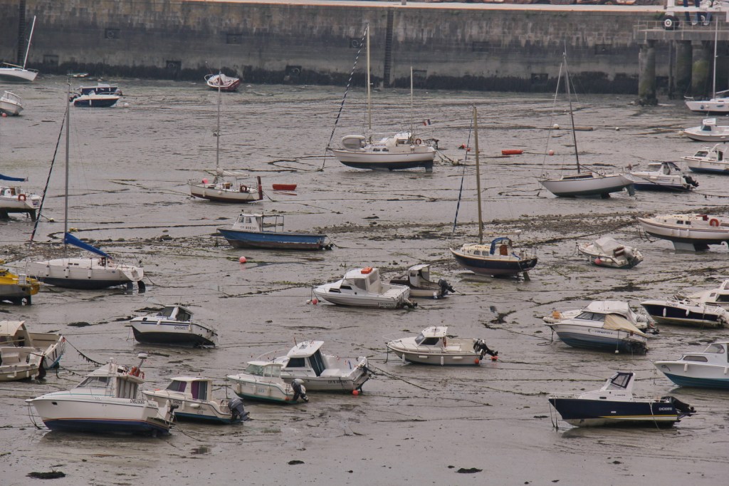 Naslednja postojanka je bilo mesto Granville. Sprehodila sva se ob mestnem zidu in si ogledala fenomen visoke plime ter oseke. Nihanje morja seže tudi čez 10 metrov. Ob oseki pristanišča za ladje in čolne zgledajo takole: