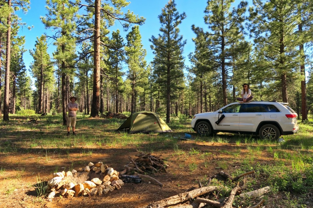 4. DIVJE KAMPIRANJE. Kampiramo lahko v vseh nacionalnih gozdovih in drugih nacionalnih ozemljih, na lokacijah, kjer postavljanje šotora ni izrecno prepovedano. V praksi to pomeni, da se ob vstopu v nacionalni gozd nahaja nekaj kampov, okrog katerih je divje kampiranje prepovedano, nekaj milj naprej pa je kampiranje dovoljeno povsod. Ponekod imamo označene lokacije, ki o namenjene prav divjemu kampiranju – v ZDA to imenujejo dispersed camping. Tak primer je Fishlake National Forest.