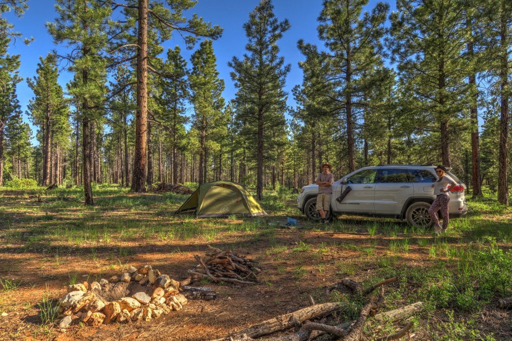 Naslednje jutro sva zgodaj zjutraj odrinila naprej proti Utahu. Vmes sva se zapeljala čez prekrasen state park Valley of Fire, ki leži čisto blizu mesta Las Vegas. Najin cilj ta dan je bil Zion N.P., ki pa sva ga na žalost morala spustiti, saj je bil kamp zaseden in rezerviran, okoli parka pa se večinoma nahajajo zelo dragi RV parki (za avtodome). Po pivu za živce sva odrinila naprej in se odpravila divje kampirat v Dixie National Forest, kjer sva v gozdu kurila ogenj in uživala v naravi. Včasih pač ne moreš videti vsega kar želiš.
