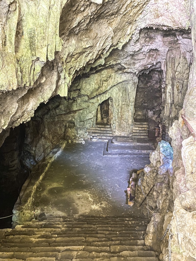 Prva postojanka je bil kraj Socerb, ki je znan po svojem gradu. Midva sva ogled gradu izpustila, ker sva se najprej zapeljala do Svete jame. Parkirala sva v bližini in se skozi borov gozdič sprehodila do jame. Posebnost Svete jame je v tem, da je spremenjena v cerkev in kot taka edina v Sloveniji.
