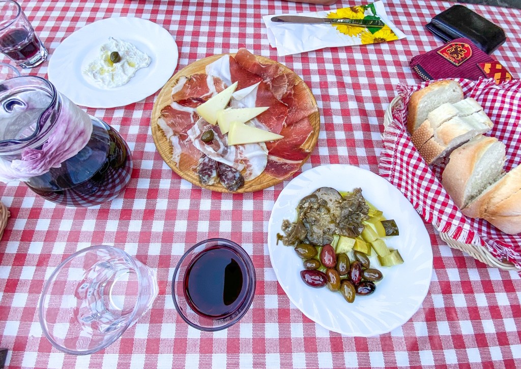 Odpeljala sva se do vasice Kubed. Tam sva parkirala pri Osmici Jakomin, ki na svojem vrtu nudi tudi kampiranje in parkirišče za avtodome. Lepo urejeno, na vrtu rastejo figovci in oljke, ki dajejo senco, pogled pa se razprostira po primorskih gričkih.